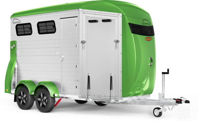 Space miracle with a convincing design – The Portax family E, K, LK & SKA offer plenty of space of horse and rider. Built with the distinctive anodised aluminium planking, still give a traditional look, but built with modern materials and strength. The Portax K and LK are the only Bockmann forward facing horse trailer models which have a front unloading ramp. LK model being the over generous trailer with additional front space for horse and rider.