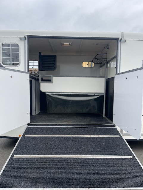We are delighted to present this stunning USED 2016 Equi-Trek Show Treka L Excel Horse Trailer, which is currently available. This highly sought-after rear-facing, spacious double horse trailer features generous tack storage and overnight accommodations for the discerning equestrian. This 2016 Equi-Trek Show Treka L Excel comes with numerous essentials, making extended stays more convenient.  With one owner from new, it is a well-maintained trailer, with some nice features.